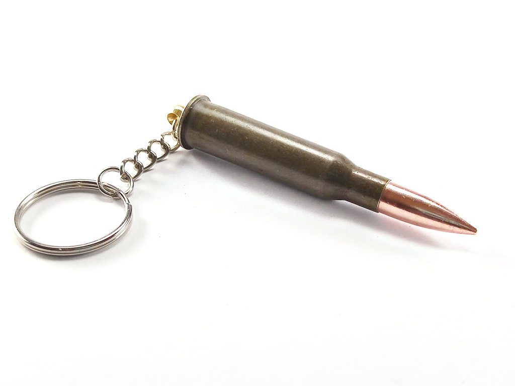 We exclusively use original military casings from the Eastern Block, Cold War era for this keychain's production.
