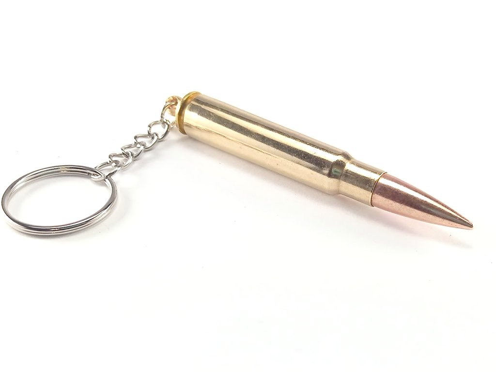 This keychain showcases the 7.92x57JS Mauser cartridge, a renowned German rifle cartridge introduced in 1905. Known for its extensive use during both World Wars, this cartridge was the backbone of German infantry rifles and machine guns. Its enduring legacy continues as a popular choice among hunters and collectors worldwide. The keychain serves as a practical yet historical artifact, perfect for everyday use or as a collectible.